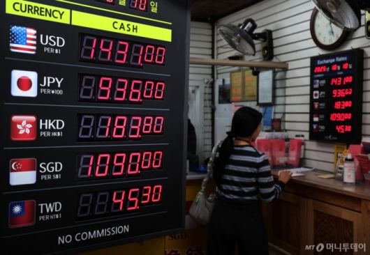 원·달러 환율이 급등한 10일 오후 서울 중구 명동의 환전소 달러 시세가 1달러 당 1430원을 넘겨 거래되고 있다. /사진=뉴시스 |