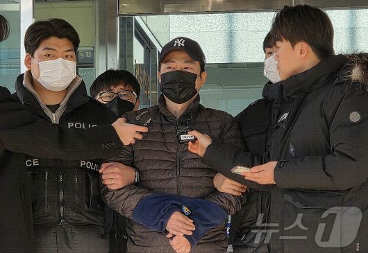 (천안=뉴스1) 최형욱 기자 = 검찰에 송치된 '천안 층간소음 살해' 피의자 양민준이 12일 천안시 동남경찰서를 나서며 취재진 질문에 대답하고 있다. 2025.12.12/뉴스1choi4098@news1.krCopyright ⓒ 뉴스1. All rights reserved. 무단 전재 및 재배포, AI학습 이용 금지.