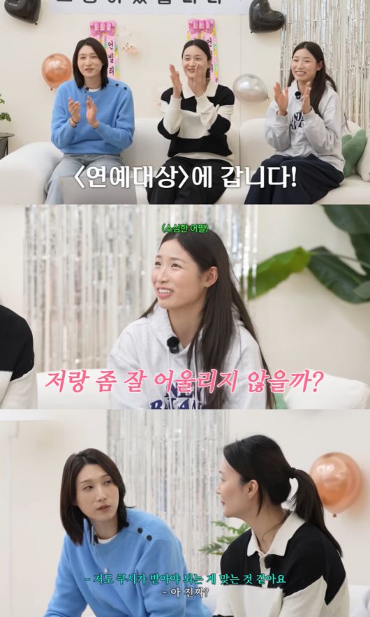 영상에 출연한 배구선수 김수지는 "곧이면 연말 시상식이잖아. 계속 뜨더라고. 올해의 화제성, 예능 1위 뜨는데. 혹시 인쿠시 선수랑 베스트커플상 예상하는지"라고 물었다.