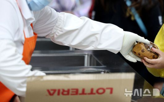 [대구=뉴시스] 이무열 기자 = 지난 5일 대구 한 초등학교 급식실에서 학생들이 대체식으로 햄버거를 받고 있는 모습. 2025.12.05. lmy@newsis.com |