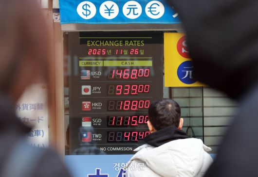 지난달 26일 서울 중구 명동의 한 환전소에 달러를 포함한 각국 외화의 환전 환율이 표시되어 있다. 정지윤 선임기자 |