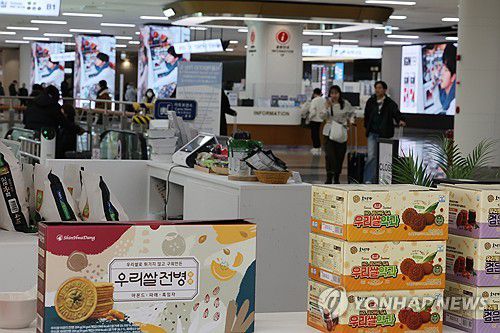 (서울=연합뉴스) 이진욱 기자 = 농림축산식품부는 12일 김포국제공항 국제선청사 1층에 우리쌀과 쌀가공식품을 알리는 팝업 스토어를 열었다. 내년 1월까지 운영하며 8도를 대표하는 고품질쌀과 휴대가 편한 소포장쌀, 우리 쌀·밀·콩으로 만든 가공식품 등 30여 종을 판매한다. 사진은 이날 팝업 스토어 모습. 2025.12.12