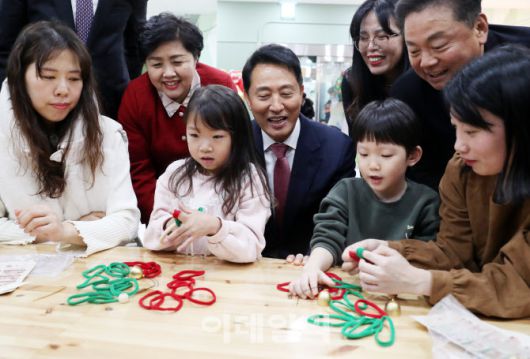 [이데일리 김태형 기자] 오세훈 서울시장이 12일 오후 서울 강서구 아동전용 복합공간 ‘서울키즈플라자’ 개관식에 참석해 관계자들과 시설 라운딩을 하고 있다. 서울키즈플라자는 화곡역과 우장산역 인근에 지하 1층~지상 4층(연면적 3,779m²)으로 건립되었다. 6세~12세 아동을 대상으로 운영되며 공공 실내 놀이터, 강서 거점형 키움센터, 서울어린이미래활짝센터 등이 마련됐다.