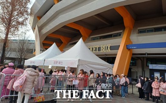데뷔 초기부터 성실함과 진정성으로 평가받아온 이찬원은 무대에서 몰입도 높은 가창력을, 무대 밖에서는 겸손하고 따뜻한 태도를 보여주며 팬들로부터 사랑 독차지하고 있다. 사진은 공연 시작전 티켓부스와 포토존에 줄을 선 팬들의 모습. /강일홍 기자 |