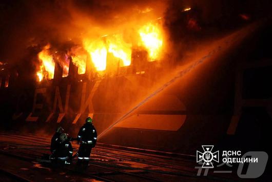 12일(현지시간) 러시아의 공격으로 우크라이나 흑해 오데사주 초르노모르스크 항에 정박해 있던 튀르키예 선박에서 화재가 발생해 우크라이나 소방대원들이 진화 작업을 벌이고 있다. 2025.12.12./뉴스1 ⓒ AFP=뉴스1 ⓒ News1 이창규 기자 |