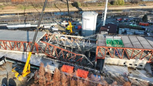 앞서 11일 오후 1시58분께 광주대표도서관 신축공사 현장에서 옥상 콘크리트 타설 중 붕괴사고가 발생해 하청노동자 4명이 매몰됐다.