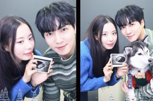 최연수는 12일 자신의 인스타그램에 남편 김태현, 강아지와 함께 초음파 사진을 들고 찍은 사진을 공개했다. 태아가 뱃속에 누워 있는 초음파 사진과 아기용품을 선물 받은 이미지 등도 같이 올렸다.