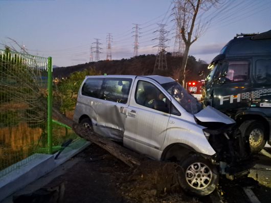 이 사고로 승합차 탑승자 6명 중 40대 운전자가 심정지 상태로, 병원으로 이송됐으나 숨졌습니다.