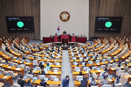 13일 서울 여의도 국회에서 열린 제430회국회(임시회) 제1차 본회의에서 은행법 일부개정법률안이 가결되고 있다. ⓒ News1 신웅수 기자 |