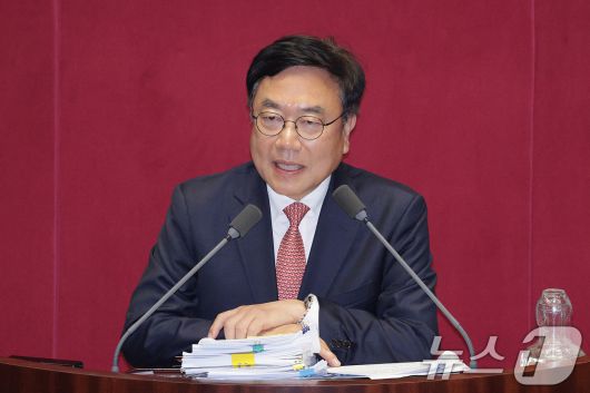 (서울=뉴스1) 신웅수 기자 = 서범수 국민의힘 의원이 13일 서울 여의도 국회에서 열린 제430회국회(임시회) 제1차 본회의에서 경찰관 직무집행법 일부개정법률안(대안)에 대한 무제한 토론(필리버스터)을 하고 있다. 2025.12.13/뉴스1phonalist@news1.krCopyright ⓒ 뉴스1. All rights reserved. 무단 전재 및 재배포, AI학습 이용 금지.