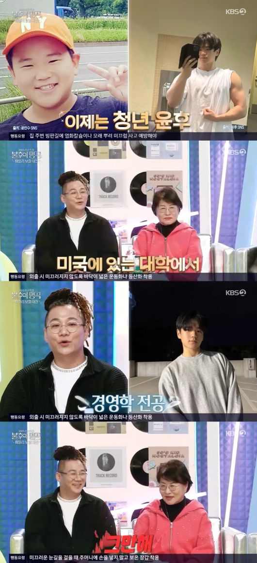 이날 윤민수는 어머니 김경자와 함께 출연했다. 윤민수는 아들 윤후가 언급되자 "지금 20살이다"라며 폭풍성장 근황을 전했다.