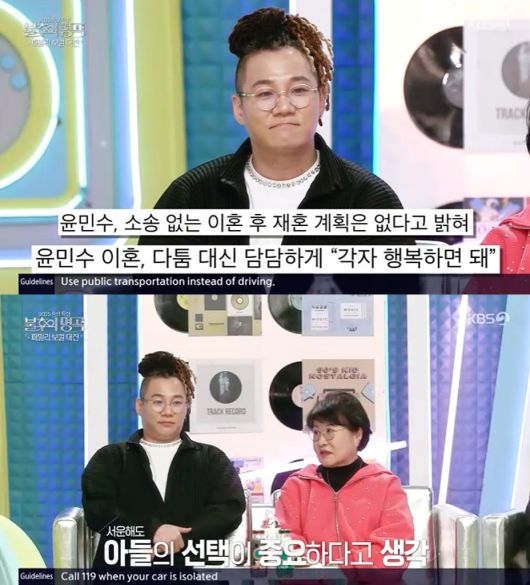 윤민수 어머니는 "(이혼을) 아침에 아들을 쳐보고 기사로 알았다. 서운하면 어쩌겠냐. 내가 하지 말라고 해도 안할 것도 아니고"라고 쿨하게 답해 눈길을 끌었다.