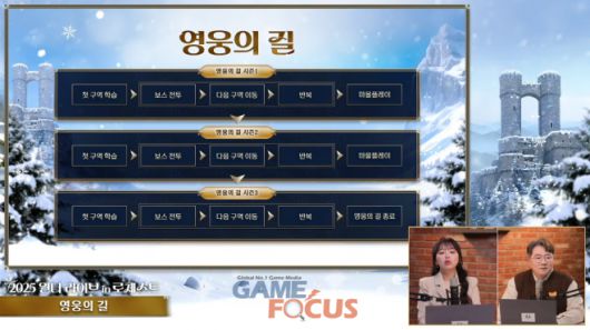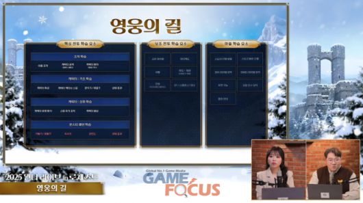 넥슨이 13일 ‘마비노기 영웅전’의 라이브 방송 ‘2025 윈터 라이브 in 로체스트’를 통해 대규모 겨울 업데이트 계획과 개발 방향성을 공개했다.