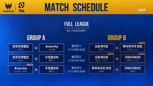 SOOP이 개최하고 '리그 오브 레전드' 전현직 프로게이머와 마스터 티어 이상의 선수가 참여하는 '2025 SLL 윈터'가 15일 개막한다.