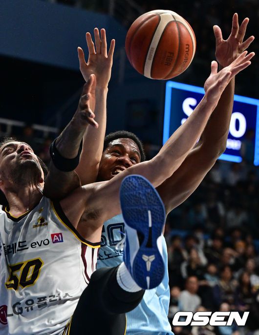 [OSEN=고양, 조은정 기자]14일 경기 고양시 고양소노아레나에서 2025-2026 LG전자 프로농구 고양 소노와 창원 LG의 경기가 열렸다. 3라운드 맞대결을 앞둔 소노와 LG의 시즌 맞대결 전적은 1승 1패다. 1쿼터 LG 마레이와 소노 나이트가 리바운드를 다투고 있다. 2025.12.14 /cej@osen.co.kr