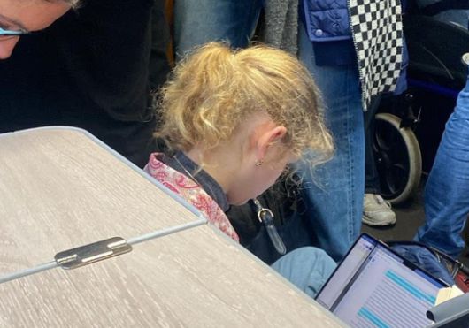 루이즈 앨리스 엘리자베스 메리 마운트배튼윈저 공주가 열차 객실 바닥에 앉아 에세이를 쓰고 있다. 영국 데일리메일 캡처 |
