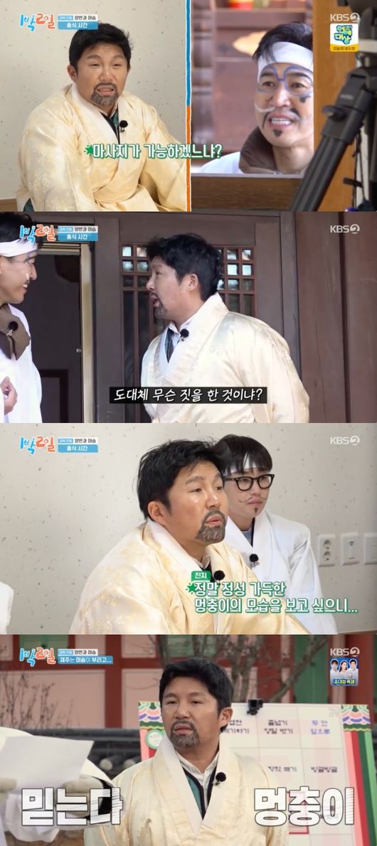 이날 방송에서는 경북 안동 여행 두 번째 이야기가 그려졌다. 양반이 된 조세호는 머슴 김종민과 티격태격 ‘웃음 케미’를 완성하는가 하면, 머슴이 도망가지 못하도록 잡으며 신분을 유지하기도 했다. 몸을 던져 김종민을 잡는 등 활약을 펼친 조세호였다.