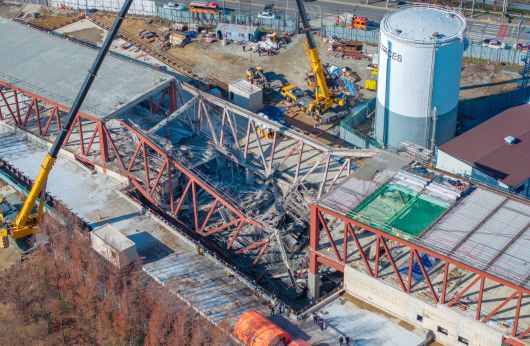 지난 11일 광주 서구 ‘광주대표도서관’ 신축 공사 현장에선 철골 구조물이 무너져 작업자 4명이 숨졌다. 경찰은 시공사가 구조물 접합 공사를 부실하게 했을 가능성 등을 조사하고 있다. 이 도서관은 길이 24m와 48m 철제 구조물을 이어 붙여 만드는데 접합 부분이 칼로 무를 자른 것처럼 매끈하게 끊어졌기 때문이다. 구조물 아래에 지지대를 설치하지 않고 작업한 사실도 드러났다. 숨진 근로자 4명은 모두 하도급업체 직원이었다.