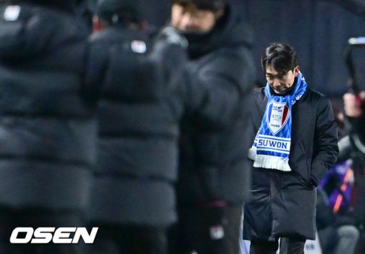 [OSEN=수원월드컵경기장, 최규한 기자] 3일 오후 경기도 수원월드컵경기장에서 ‘K리그 승강 플레이오프(PO)’1차전 수원 삼성과 제주 SK의 경기가 열렸다.이날 경기는 제주가 1-0으로 승리하며 잔류에 청신호를 켰다.경기를 마치고 수원 변성환 감독이 아쉬워하고 있다. 2025.12.03 / dreamer@osen.co.kr |