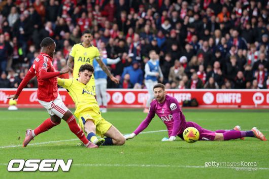 토트넘이 아쉬움을 삼켰다. 전반 33분 그레이가 날카로운 터닝 슈팅으로 자신의 실수를 만회하고자 했다. 그러나 슈팅은 골키퍼 선방에 막혔다. 전반은 노팅엄이 1-0으로 앞선 채 끝났다.