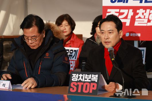 장 대표는 이날 오전 국회 본관 앞 천막농성장에서 열린 최고위회의에서 "이재명 정권은 지금껏 찾아볼 수 없었던 무자비하고 폭압적인 권력으로, 이를 막아 세우기 위해 모두가 함께 힘을 모아 맞서 싸워야 한다"며 이같이 말했다.