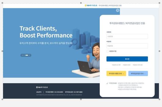 NH투자증권이 투자권유대행인과 퇴직연금 모집인의 영업·관리 업무 효율화를 위해 전용 홈페이지를 구축한 후 1차 서비스를 개시한다고 15일 밝혔다.