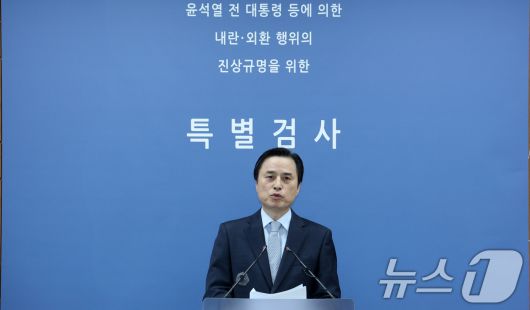 (서울=뉴스1) 박지혜 기자 = 조은석 특검이 15일 서울 서초구 서울고검에서 윤석열 전 대통령의 비상계엄 선포 동기와 최초 준비 시점 등을 포함한 수사 결과를 발표하고 있다. (공동취재) 2025.12.15/뉴스1pjh2580@news1.krCopyright ⓒ 뉴스1. All rights reserved. 무단 전재 및 재배포, AI학습 이용 금지.