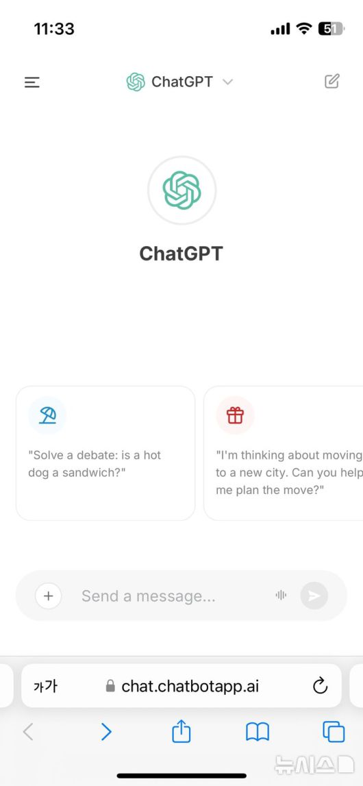 [서울=뉴시스] 한국소비자원은 챗지피티(ChatGPT) 등 유명 생성형 인공지능(AI)과 유사한 누리집으로 인한 소비자 피해가 발생하고 있다고 15일 밝혔다. 사진은 챗지피티와 유사한 프로그램의 시작 페이지 갈무리. (사진=한국소비자원 제공) 2025.12.15. photo@newsis.com |