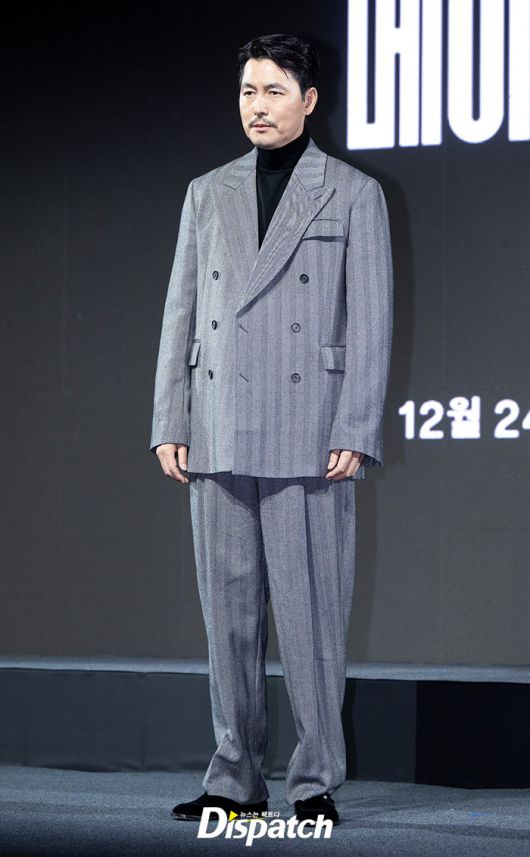 배우 정우성은 그레이톤 수트로 멋진 맵시를 보여줬다. 잘넘긴 헤어와 수염으로 남성미를 뽐냈다.