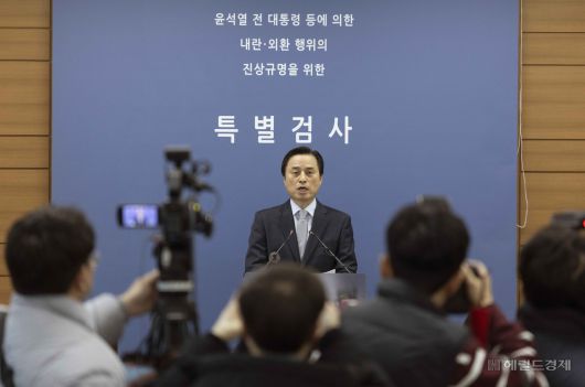 [헤럴드경제=임세준 기자] 조은석 특별검사가 15일 오전 서울 서초구 서울고등검찰 브리핑룸에서 윤석열 전 대통령의 12·3 비상계엄 관련 내란·외환 사건 수사 결과를 발표하고 있다.