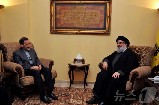 2015년 5월 19일 이란 최고지도자 아야톨라 알리 하메네이의 고위 고문 알리 아크바르 벨라야티(왼쪽)가 지난해 이스라엘 공습으로 사망한 헤즈볼라 전 지도자 하산 나스랄라와 회담하고 있다. 2015.05.19. ⓒ 로이터=뉴스1 ⓒ News1 이정환 기자 |