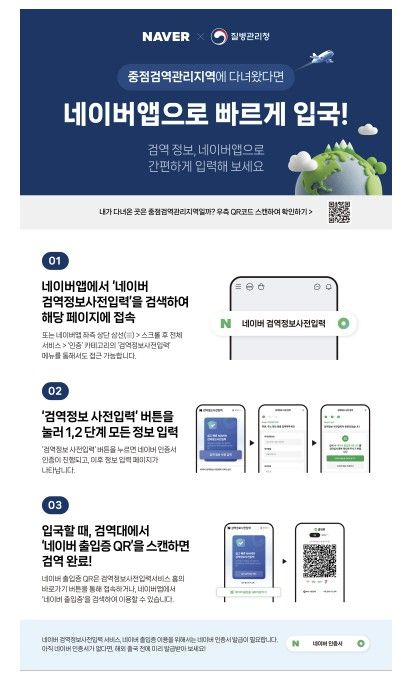 질병관리청은 입국자 검역정보 사전 입력 시스템(Q-CODE·큐코드)을 네이버와 연계해 간소화한다고 15일 밝혔다.