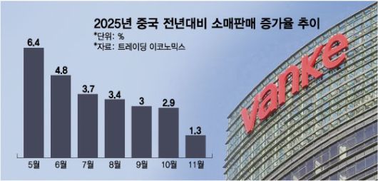 2025년 중국 전년대비 소매판매 증가율 추이/그래픽=임종철 |