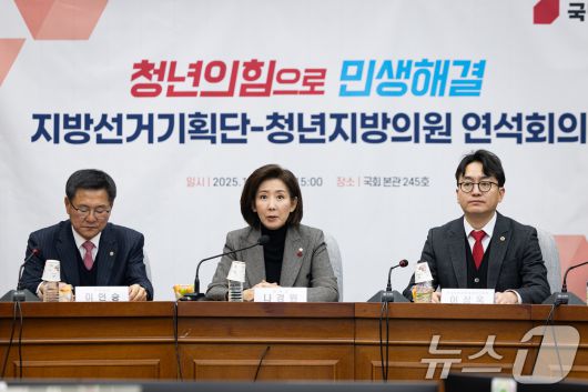 (서울=뉴스1) 유승관 기자 = 나경원 국민의힘 지방선거 총괄기획단 위원장이 15일 서울 여의도 국회에서 열린 지방선거총괄기획단-전국청년지방의원협의회 연석회의에서 모두 발언을 하고 있다. 2025.12.15/뉴스1