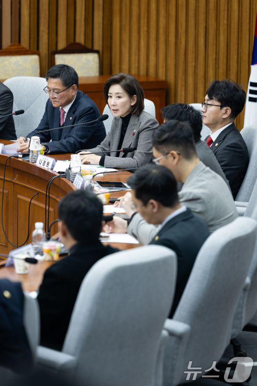 (서울=뉴스1) 유승관 기자 = 나경원 국민의힘 지방선거 총괄기획단 위원장이 15일 서울 여의도 국회에서 열린 지방선거총괄기획단-전국청년지방의원협의회 연석회의에서 모두 발언을 하고 있다. 2025.12.15/뉴스1fotogyoo@news1.krCopyright ⓒ 뉴스1. All rights reserved. 무단 전재 및 재배포, AI학습 이용 금지.