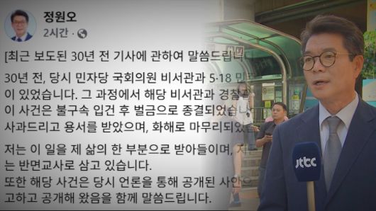 30년 전인 1995년 정원오 성동구청장이 과거 양천구청장 비서관 시절 한 술집에서 국회의원 비서관 A씨와 시비가 붙어 전치 2주의 상해를 입혔다는 내용의 기사를 공유하며 "지금까지 널리 알려지지 않은 게 기적"이라고 했습니다.