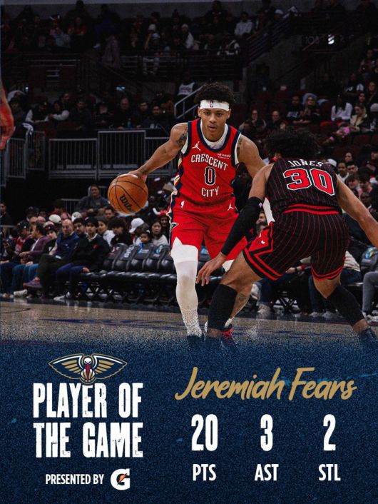 7연패에 빠졌던 펠리컨스는 이번 승리로 2연승을 거두며 시즌 전적을 5승 22패로 끌어올렸다. 이번 시즌 시카고와의 두 차례 맞대결에서도 모두 승리하며 상대 전적에서도 우위를 점했다.