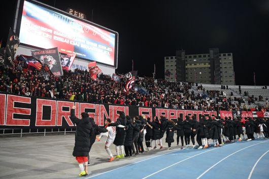 홈·원정 가리지 않고 응원문화를 이끌며 팀의 ‘12번째 선수’로 활약했다. 지난 8일 2차전 종료 뒤 부천의 밤은 열기로 가득했다. 종합운동장에는 자정을 넘긴 시간까지 1000여명의 서포터스와 시민들이 모여서 자축 세리머니를 펼쳤다.
