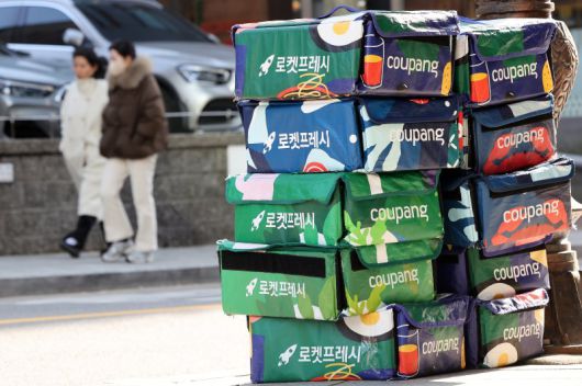 서울 중구 한 빌딩 앞에 쿠팡 배송박스들이 쌓여 있다. 뉴스1 |