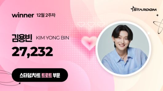 한편 김용빈은 12월 2주차 '스타덤 차트' 음원 부문에서는 '어제도 너였고 오늘도 너여서'로 1위를 기록하면서 12주 연속 정상을 지켰다. 배우 부문 주간랭킹에서는 김수현이 9주 연속 1위에 올랐다. 아이돌 부문에서는 피프티피프티가 8주 연속 정상에 올랐다.