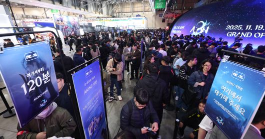 지난달 13일 오전 부산 해운대구 벡스코에서 열린 국내 최대 게임쇼 ‘지스타 2025’에서 관람객이 엔씨소프트의 신작 ‘아이온2’를 시연하기 위해 대기하고 있는 모습 [연합] |