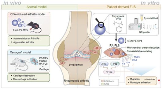 폴리스티렌 미세플라스틱(PS-MPs)이 류마티스 관절염 병태를 악화시키는 in vitro·in vivo 기전]