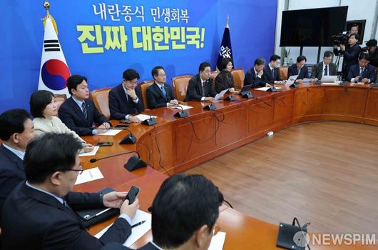 [서울=뉴스핌] 윤창빈 기자 = 김병기 더불어민주당 원내대표가 16일 서울 여의도 국회에서 열린 원내대책회의에서 모두발언을 하고 있다. 2025.12.16 pangbin@newspim.com