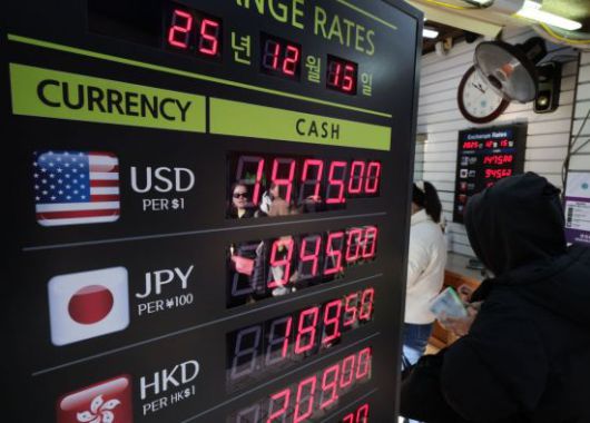 서울 중구 명동 거리의 한 환전소에 환율이 표시돼 있다. 연합뉴스 |