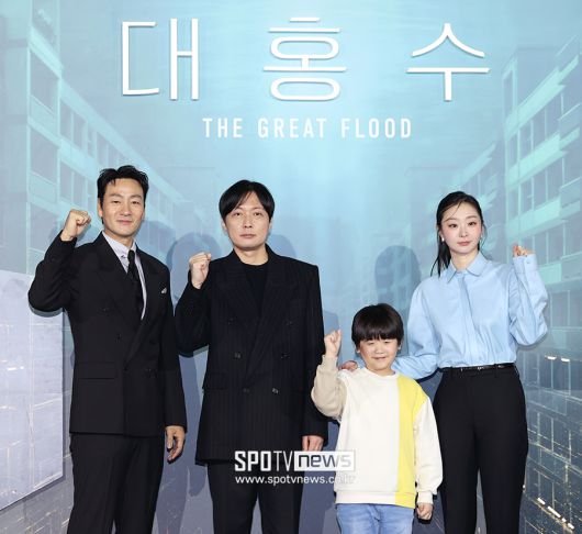 넷플릭스 영화 '대홍수'(감독 김병우) 제작보고회가 16일 오전 11시 서울 용산 아이파크몰 CGV에서 열렸다. 이날 현장에는 배우 김다미, 박해수, 권은성, 김병우 감독이 참석했다.
