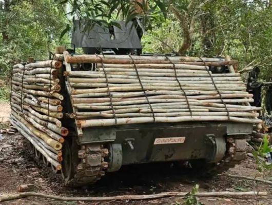 태국과 캄보디아가 두 달 만에 교전을 재개한 가운데, 통나무로 전면과 측면을 덮은 태국의 장갑차가 포착됐다. 최근 우크라이나 군사 전문 매체 밀리타르니 등 외신은 태국군이 캄보디아 공격에 활용 중인 ‘친환경’ M113 궤도형 장갑차를 소개했다.