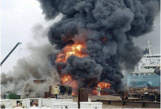 소방당국은 배관 절단 작업을 하던 중 불씨가 수리를 위해 정박 중인 선박으로 튄 것으로 보고 정확한 화재 원인 등을 조사하고 있다.