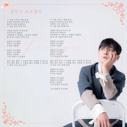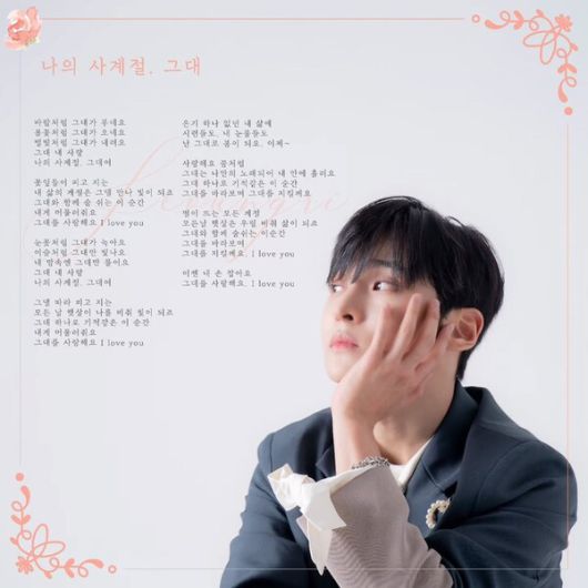 공개된 리릭 티저 사진 속에는 네이비와 베이지의 투톤 수트를 걸친 성리가 턱을 괸 채 어딘가를 응시하는 모습이 담겨있다. 그런 성리의 주위로 부드러운 꽃바람이 불어온 듯한 디자인이 더해져 봄날의 왕자 같은 분위기를 풍긴다.