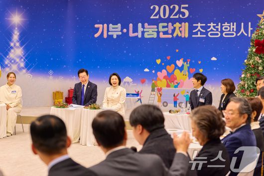 (서울=뉴스1) 허경 기자 = 이재명 대통령과 김혜경 여사가 16일 용산 대통령실에서 열린 2025년 기부·나눔단체 초청행사에 참석해 있다. (대통령실 제공. 재판매 및 DB 금지) 2025.12.16/뉴스1neohk@news1.krCopyright ⓒ 뉴스1. All rights reserved. 무단 전재 및 재배포, AI학습 이용 금지.