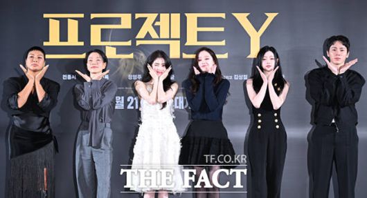 [더팩트ㅣ이새롬 기자] 배우 정영주와 김신록, 한소희, 전종서, 유아, 이재균(왼쪽부터)이 16일 오후 서울 강남구 코엑스 메가박스에서 열린 영화 '프로젝트Y' 제작보고회에 참석해 포즈를 취하고 있다.